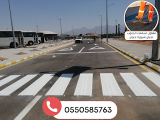 - بعد التأكد من استواء السطح النهائي، يتم إضافة علامات الطريق وإشارات المرور اللازمة لتعزيز السلامة وتنظيم حركة المرور.